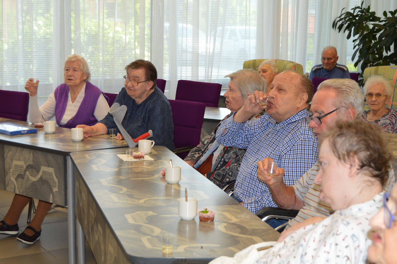 "Živijó, živijó…," znělo dnes domovem pro seniory. Dnešek byl totiž věnován dubnovým a květnovým narozeninovým oslavencům. K poslechu i k tanci zahrál pan Zdeněk Rozmarin se svou dcerou. Součástí oslavy byl také přípitek se šampaňským pro oslavence, podávaly se dortíky se šlehačkou, polárkový dort nebo káva.