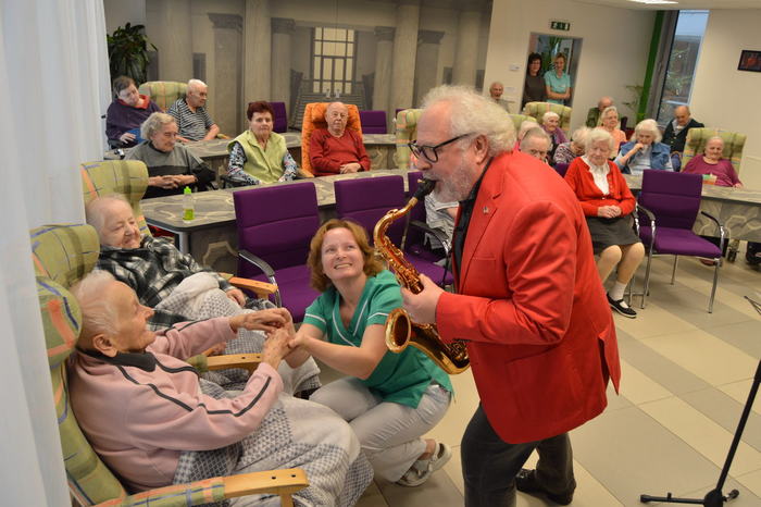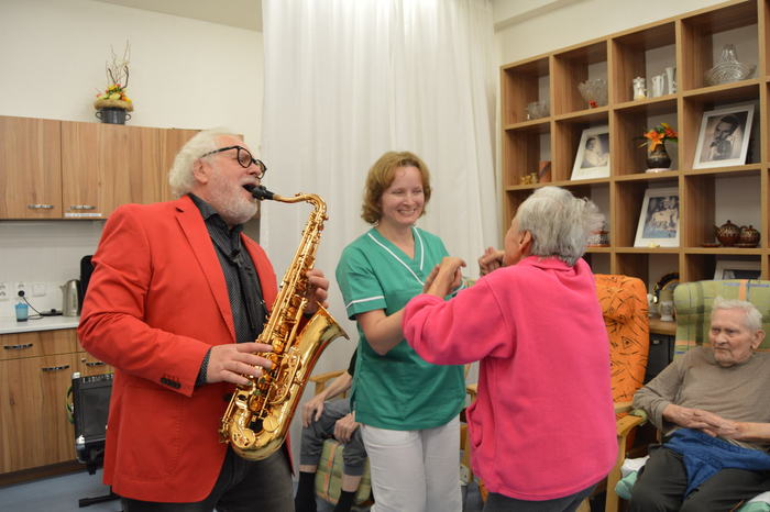 Domov pro seniory se zapojil do projektu Českého rozhlasu Ježíškova vnoučata, ve kterém se plní různá přání seniorů. Přání mohou být hmotná i nehmotná, pro jednotlivce i pro skupiny. Jedním z našich přání, která jsme na internetové stránky jeziskovavnoucata.cz uvedli pro naše obyvatele, bylo hudební vystoupení libovolného interpreta. Na tuto výzvu se nám ozval pan Dan Pazdírek z Brna s nabídkou hry na saxofon. S nadšením jsme přijali. V pondělí 11. 12. se uskutečnil malý koncert. Abychom mohli obšťatnit uši a duši našich obyvatel v co největším počtu, domluvili jsme se na dvou vystoupeních. Nejprve v prostorách univerzity třetího věku, poté v kavárně na Pomněnce. Melodie hrané saxofonem měly obrovský úspěch a roztančily mnoho obyvatel domova. Panu Pazdírkovi za tyto krásné okamžiky patří velký dík.
