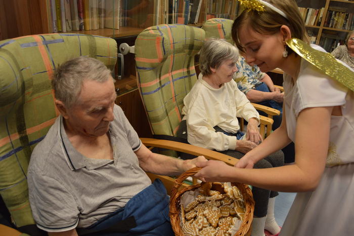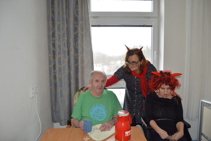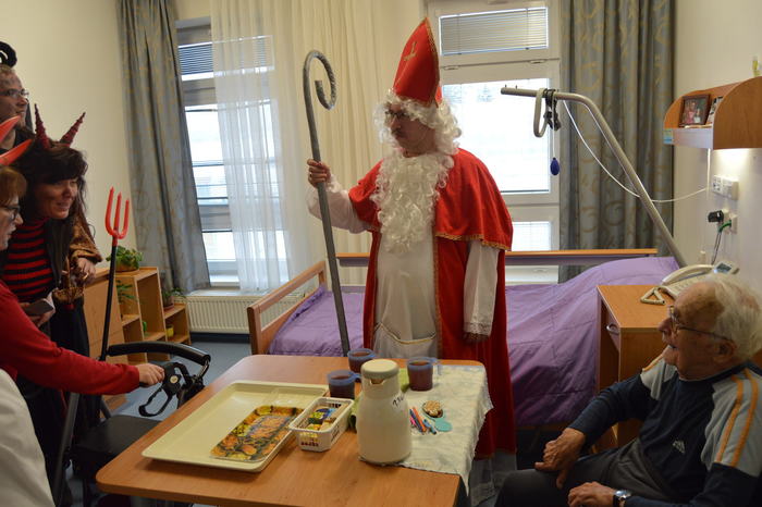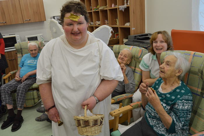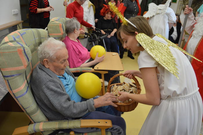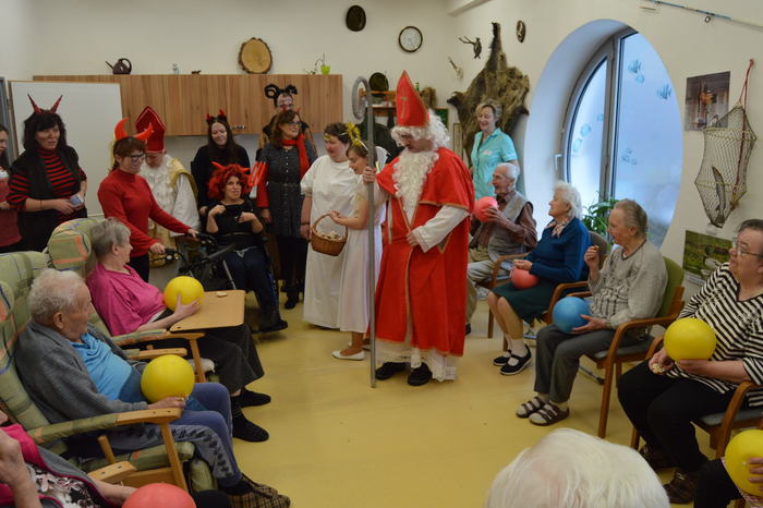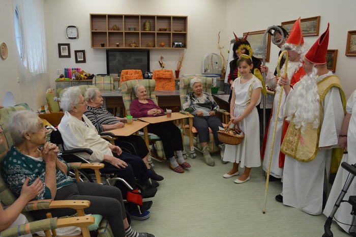 Úterý 5. prosince patřilo již tradiční návštěvě klientů z Nesy v mikulášských, čertovských a andělských převlecích. Svou návštěvou potěšili obyvatele našeho domova, kteří se moc těšili. Mikuláši a jejich družina procházeli celým domovem, tak, aby se setkali s co největším počtem seniorů. Každý byl obdarován perníček a milou koledou. Velmi si vážíme, že tato spolupráce mezi Domovem a Denním stacionářem Nesa funguje.