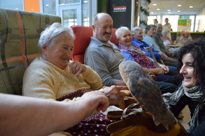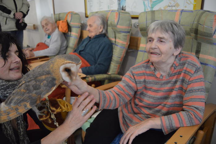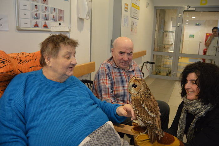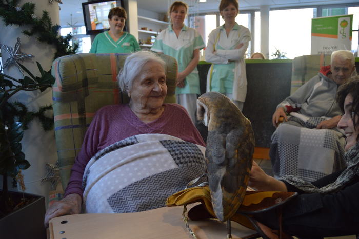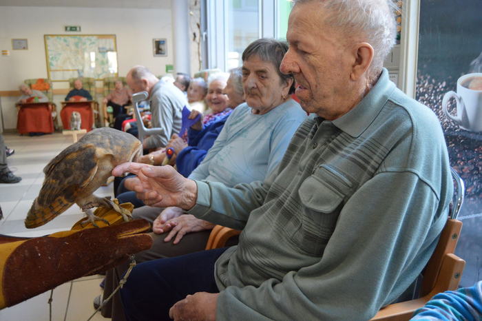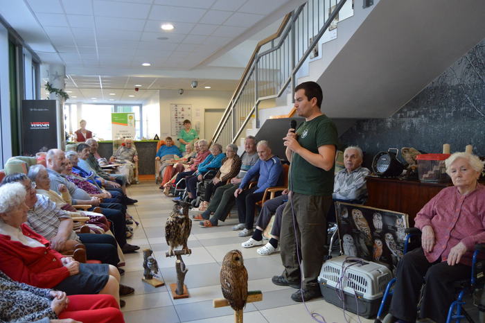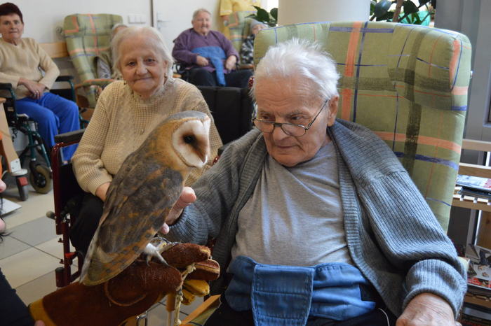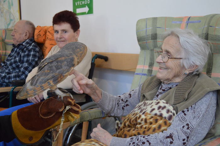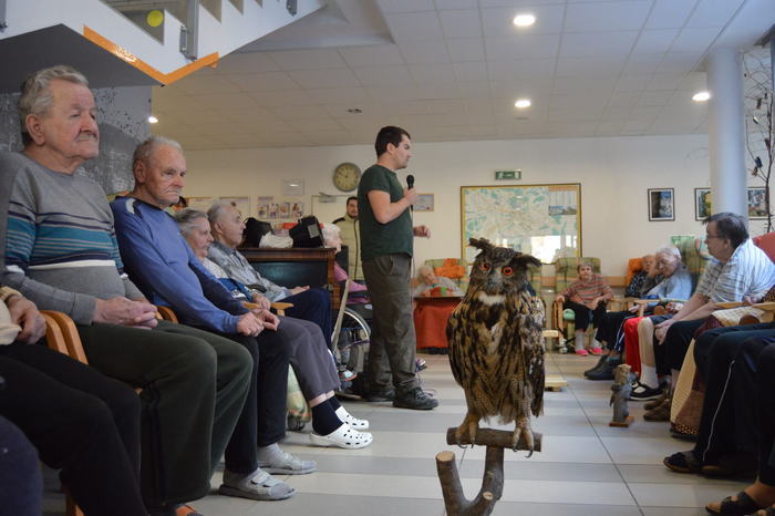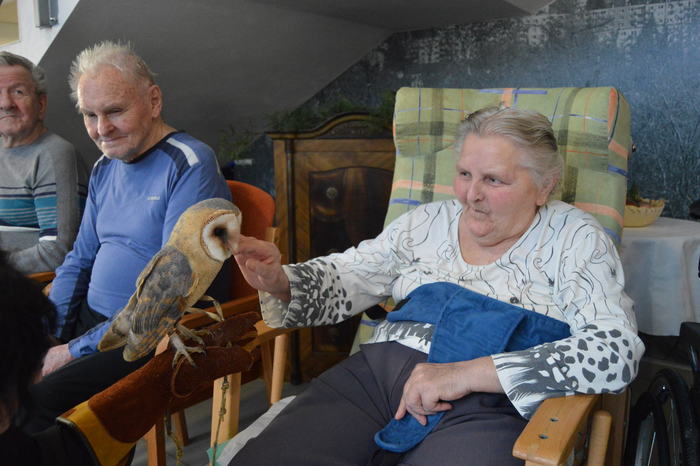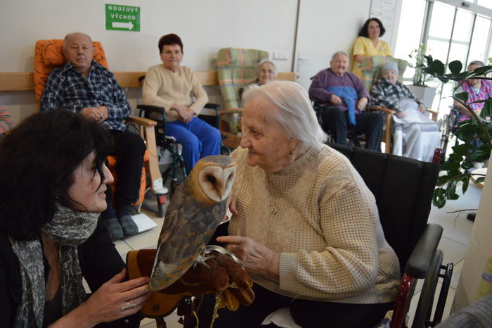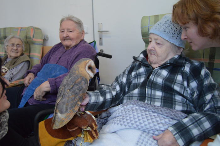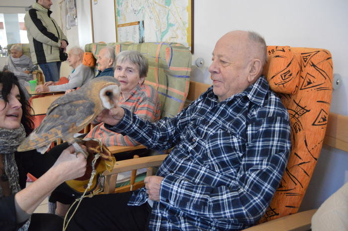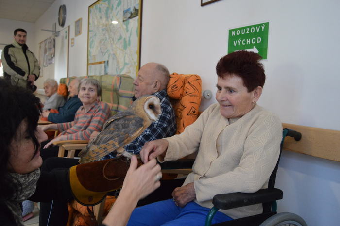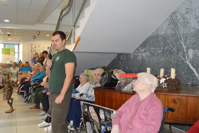 Dalším z našich společných přání v projektu Ježíškova vnoučata byl přírodopisný program od Stanice Pavlov. Ve středu 13. prosince se nám toto přání splnilo. Do domova za námi přijel za tým stanice ředitel Zbyšek Karafiát a lektorka Markéta Majorová. Připravili si povídání O sovím houkání s ukázkou nejen sov vycpaných, ale především těch živých. Všichni zúčastnění měli možnost si sovu pálenou Juliána a pušíka obecného Rozárku pohladil. Překvapení přednášky byla možnost pohladit si a zblízka si prohlédnout netopýra. Celé povídání mělo mezi obyvateli velký úspěch.