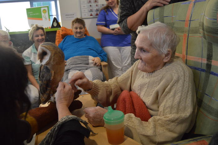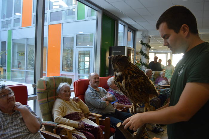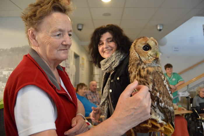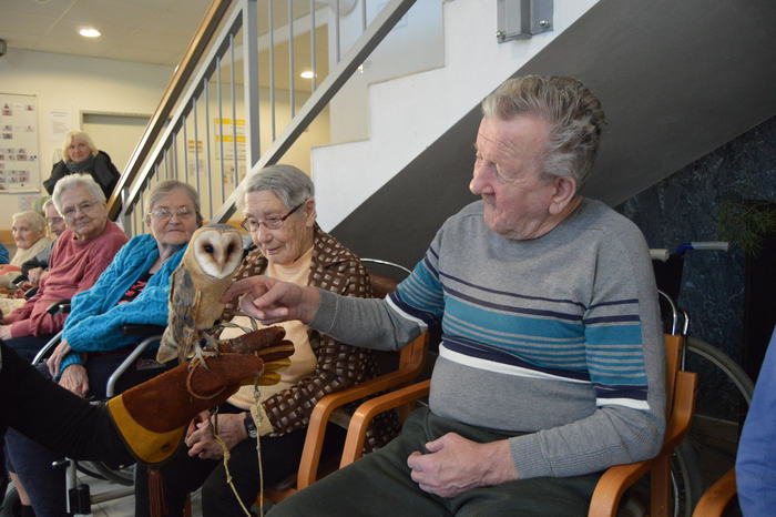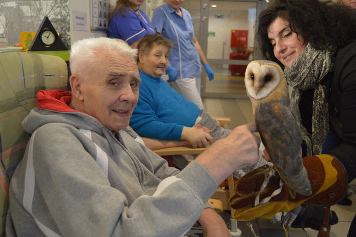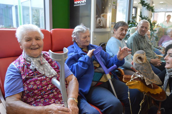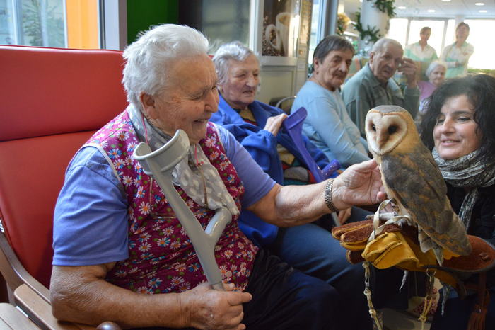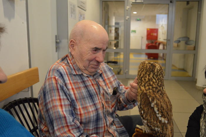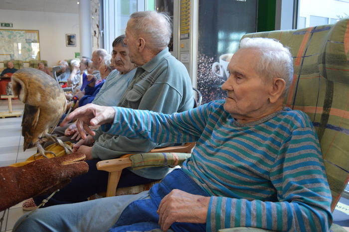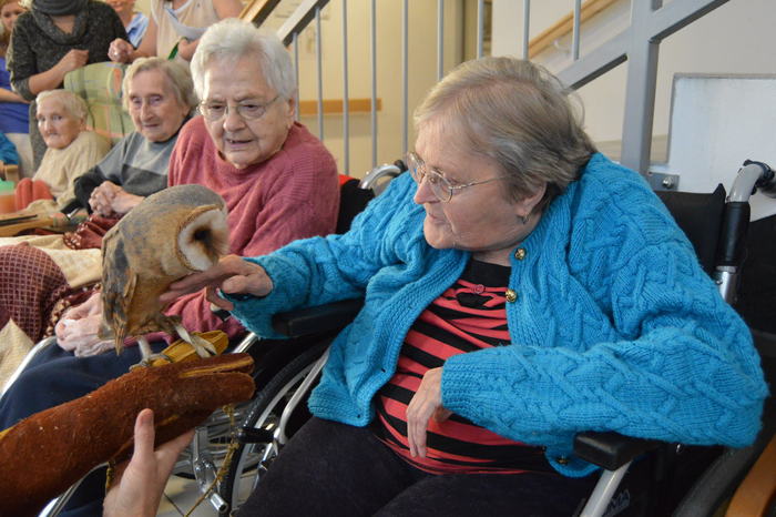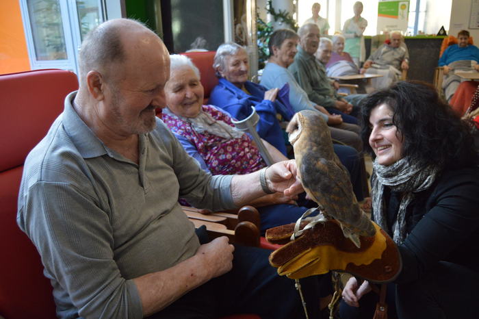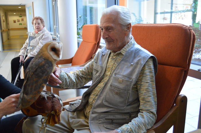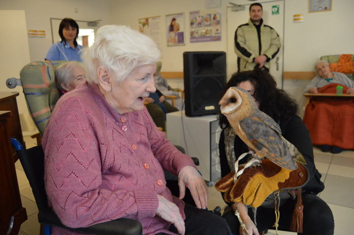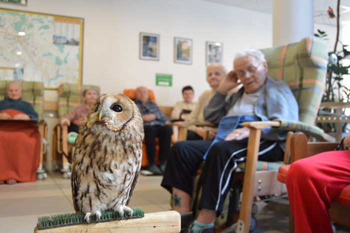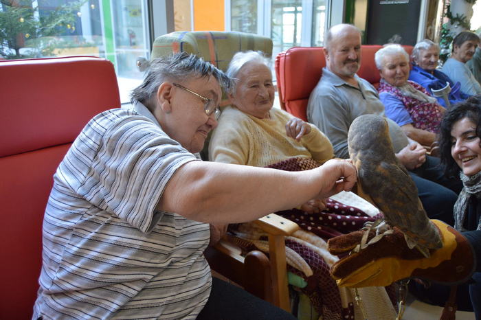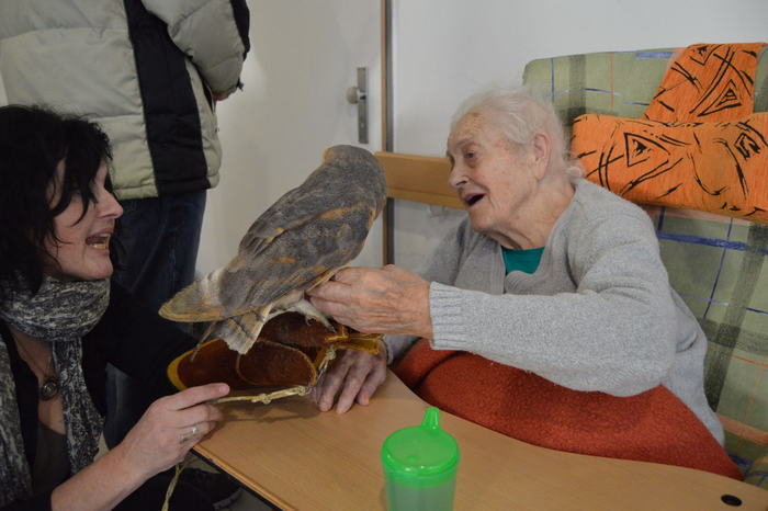 Dalším z našich společných přání v projektu Ježíškova vnoučata byl přírodopisný program od Stanice Pavlov. Ve středu 13. prosince se nám toto přání splnilo. Do domova za námi přijel za tým stanice ředitel Zbyšek Karafiát a lektorka Markéta Majorová. Připravili si povídání O sovím houkání s ukázkou nejen sov vycpaných, ale především těch živých. Všichni zúčastnění měli možnost si sovu pálenou Juliána a pušíka obecného Rozárku pohladil. Překvapení přednášky byla možnost pohladit si a zblízka si prohlédnout netopýra. Celé povídání mělo mezi obyvateli velký úspěch.