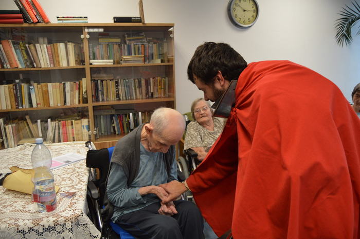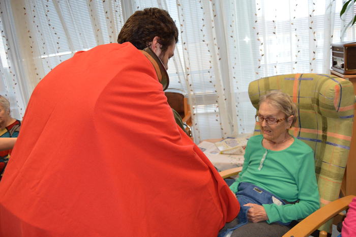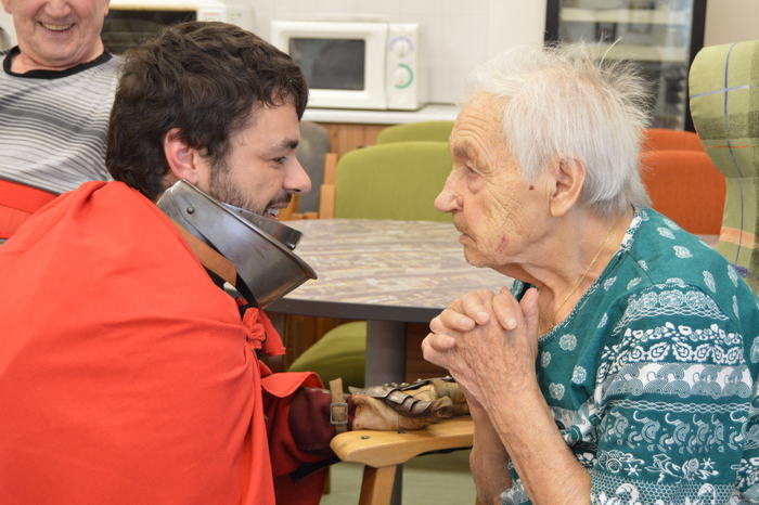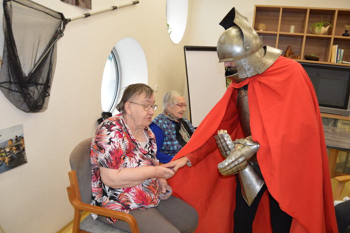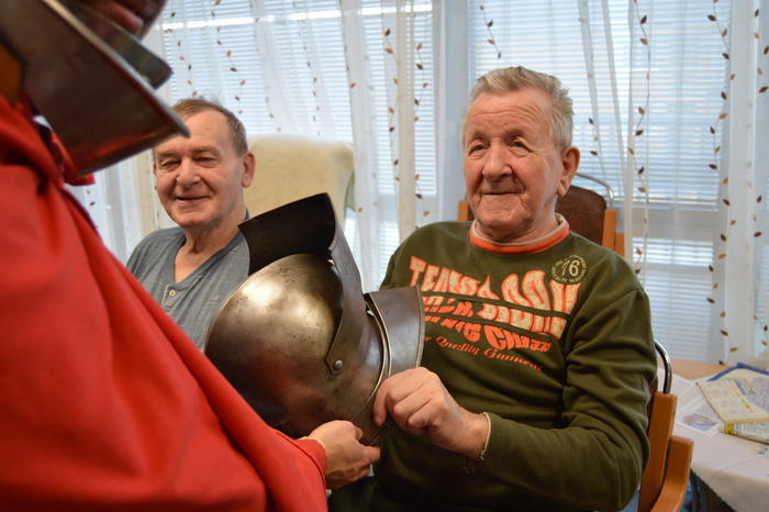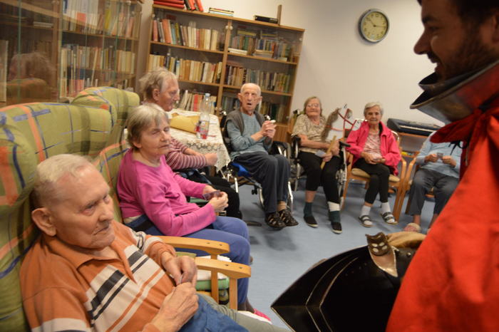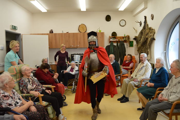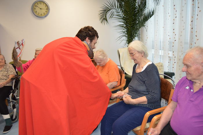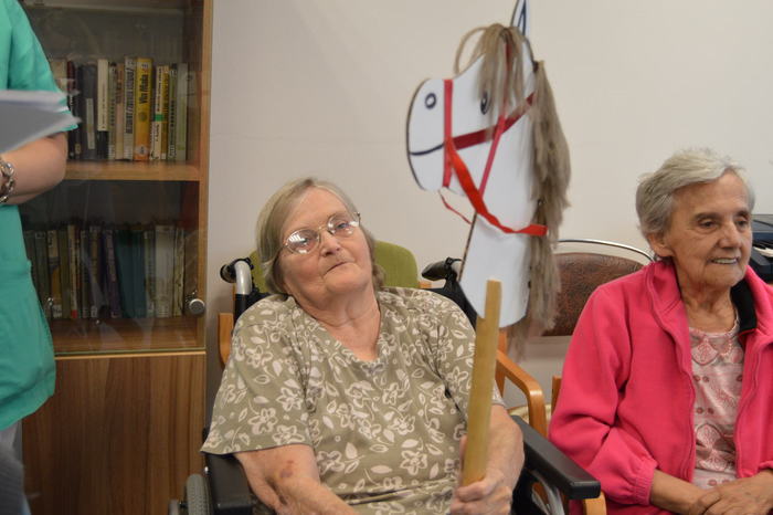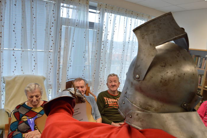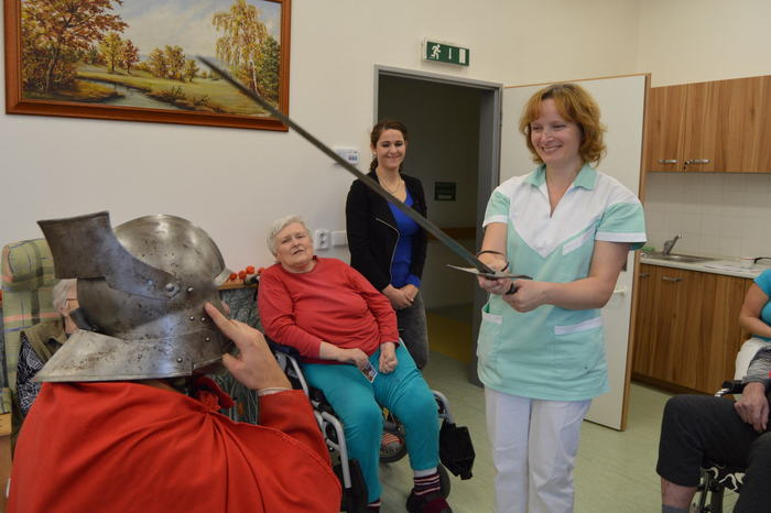 S drobným zpožděním i do našeho domova přijel svatý Martin na bílém koni. Proti loňskému roku se kůň mírně zmenšil a možná proto trvala Martinovi cesta tak dlouho. Ve svém brnění a pověstném plášti měl ale u našich obyvatel úspěch. Na všech poschodích si pro klienty připravil krátkou zdravici a přečetl poselství. Zájemcům propůjčil na ozkoušení svou přilbici. Každého z našich obyvatel obdaroval zlatým penízkem pro štěstí.