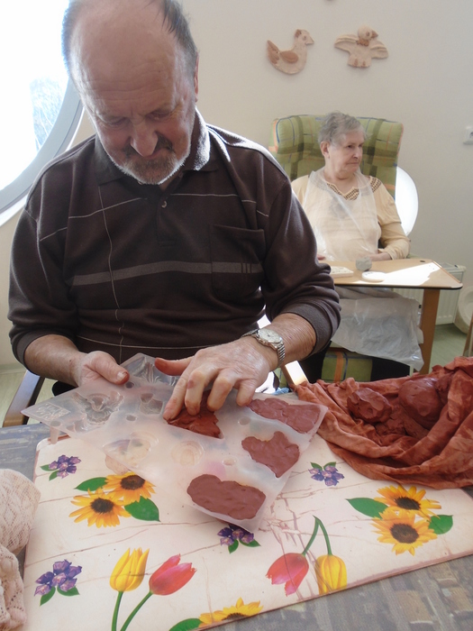 Naši obyvatelé ve spolupráci s pracovnicemi terapií pravidelně vyrábějí keramiku v naší keramické dílně. Nyní mají k dispozici nové formy a tak mohou tvarovat a vylévat nové tvary. Všechny práce moc baví a navíc má přidanou hodnotu ve společném setkávání.