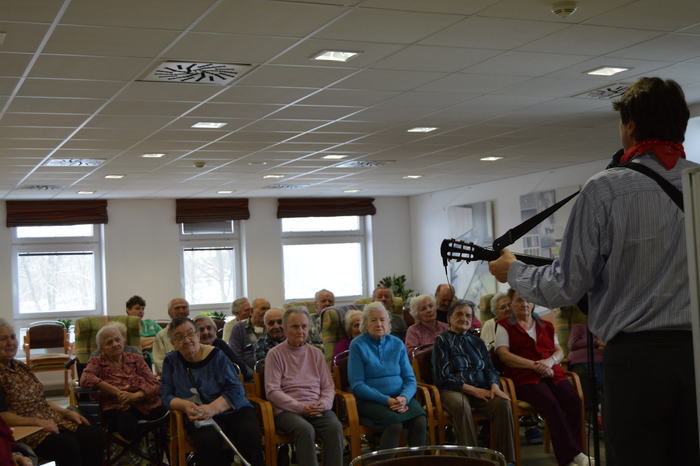 Středa 7. března patřila hlasu jako zvon, tedy hlasu zpěváka Vládi Pecháčka, který je houslistou skupiny Patrola Šlapeto. U nás se představil s kytarou ze třicátých let. Obyvatelé si měli možnost spolu s ním zapět mnoho známých písní jako Holka neznámá, Ručičky moje, nebojte se, vy makat nebudete, Zámecký schody, Tulák, Ta naše písnička česká a další.