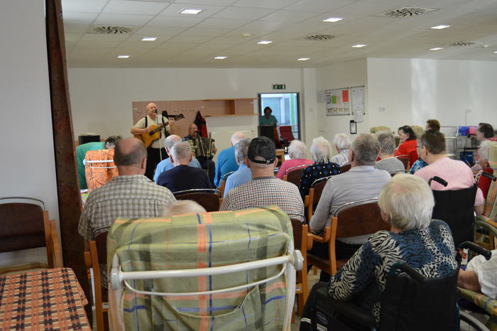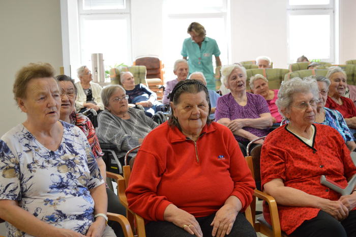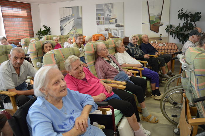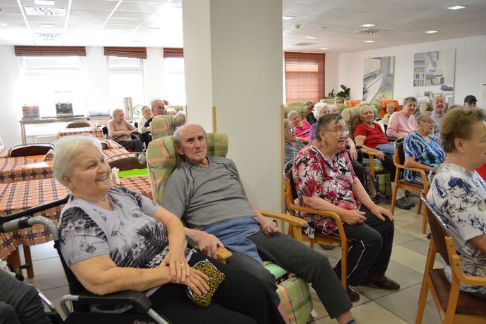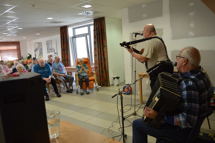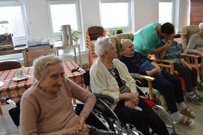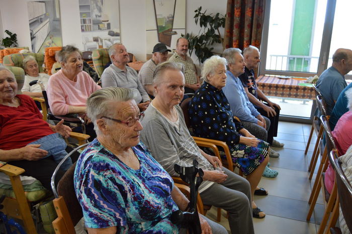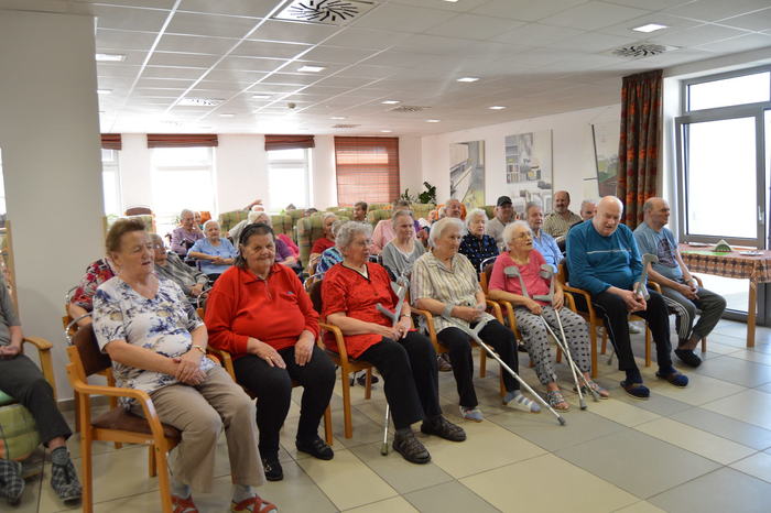 Dnes dopoledne se v jídelně konal program s názvem Písničky naší babičky, který uvedli pánové Zdeněk Černohouz a Jaroslav Šolc. Na harmoniku a kytaru nám zahráli české i moravské lidové písně, díla z pera Karla Hašlera a mnoho dalších. Všichni měli možnost si písně svého mládí zapět spolu s účinkujícími a programem byli velmi nadšeni.