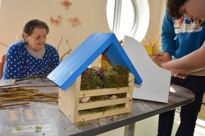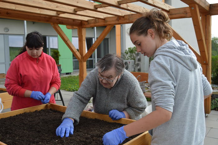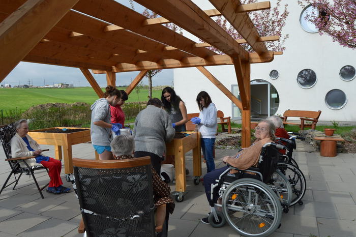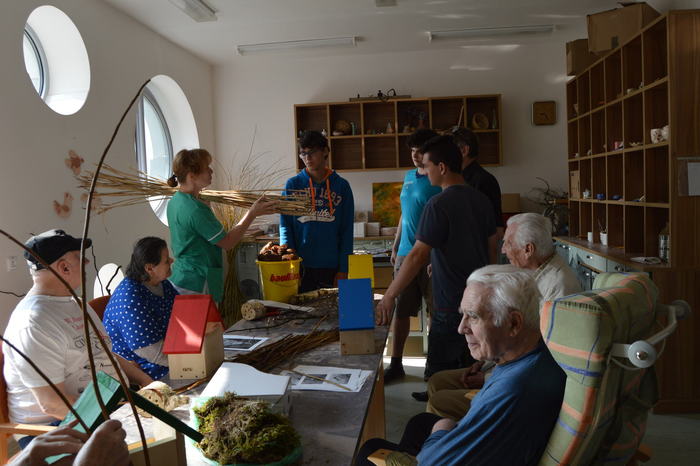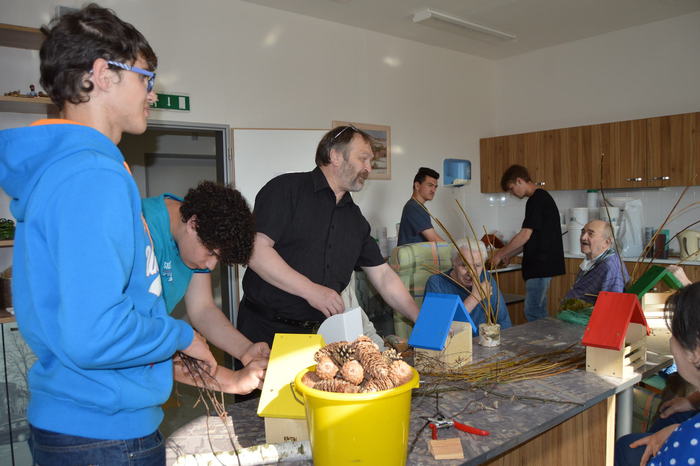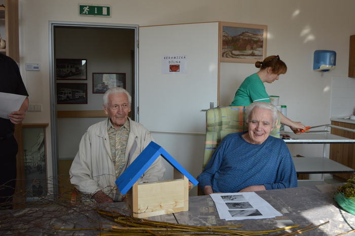 Úterní dopoledne patřilo společnému tvoření s žáky ze základní a praktické školy. Kluci se spolu s muži vytvářeli hmyzí hotely, které budou sloužit jako útočiště pro brouky v terapeutické zahrádce a parku. Děvčata a klientky domova sázely v zahrádce rajčata, salát a nejrůznější sazeničky květin. Všem zúčastněným se společné dopoledne moc líbilo.