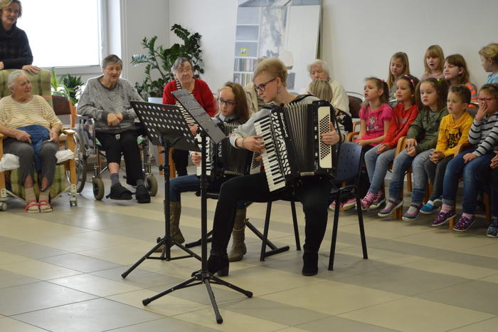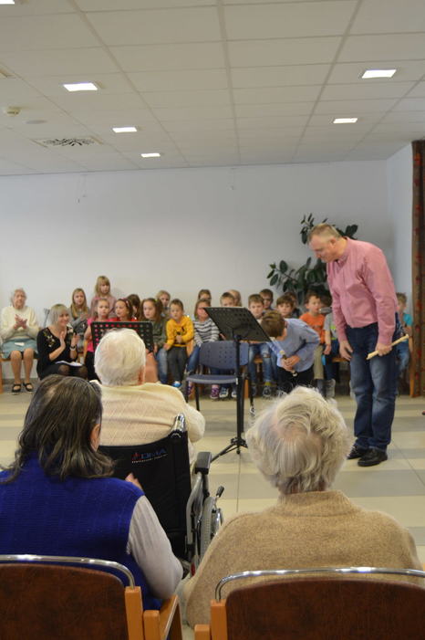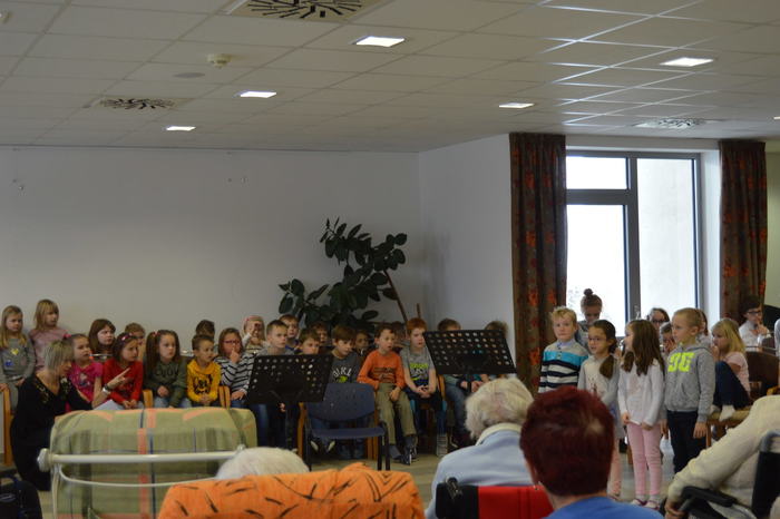 Ve čtvrtek 13. prosince za námi do domova přišli žáci místní základní umělecké školy a prvňáčci ze základní školy Oslavické. Mladí hudebníci pod vedením paní učitelky Dariny Hajné a pana učitele Radovana Hajného zahráli koledy na nejrůznější nástroje, jako jsou akordeon, flétna či lesní roh. Jejich umění podtrhla recitace a zpěv básniček a koled v podání malých žáčků, kterým byly oporou paní učitelky Radka Pešková a Michaela Floumová.