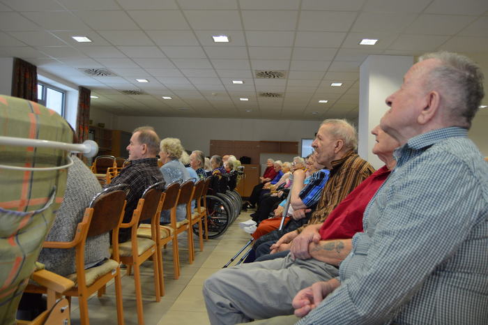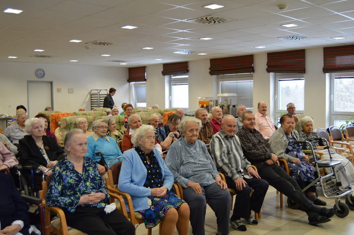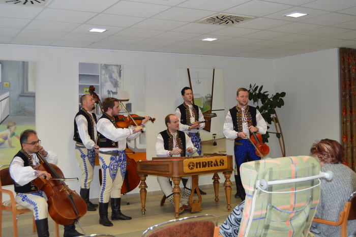 Čtvrtek 18. ledna patřil hudebnímu vystoupení Vojenského uměleckého souboru ONDRÁŠ, který v našem domově zahrál u příležitosti 70. výročí vyznamenání pana Miroslava Crkala prezidentem Edvardem Benešem za vynikající vojenské činy mimo boj. Úvodního slova se ujal pan ředitel, poté se muzikanti chopili svých nástrojů a zahráli nám mnoho moravských lidovek. V druhé polovině představení hráli také na přání. Všichni obyvatelé byli z vystoupení nadšení a moc si jej užili.