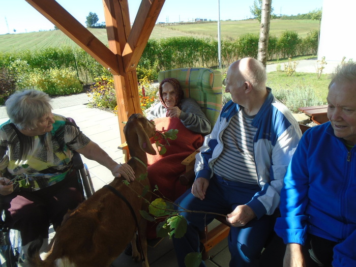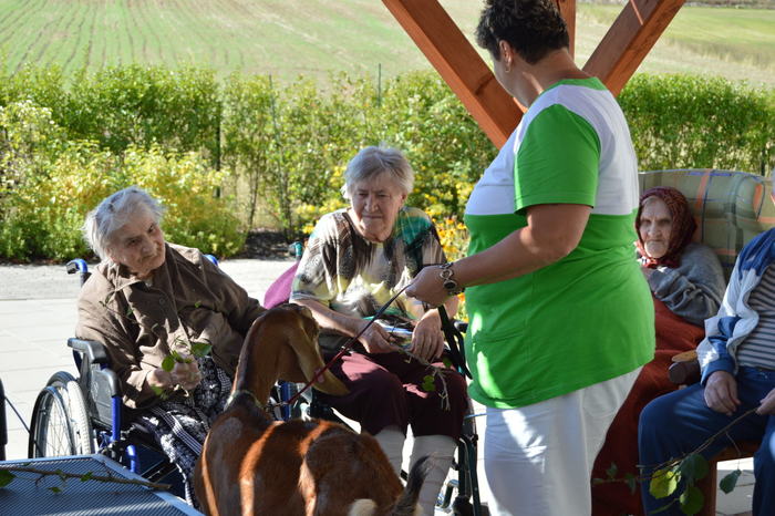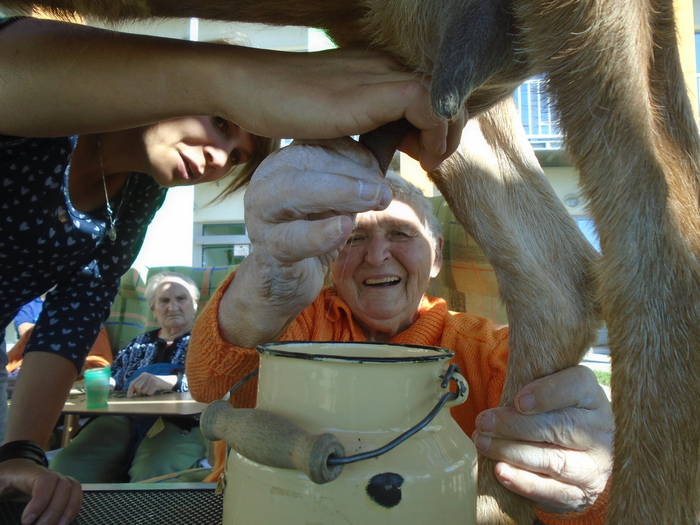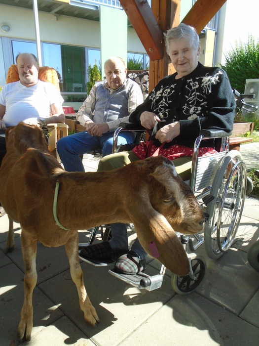 Ve středu 4. září nám zpestřila dopoledne vzácná zvířecí návštěva. Zavítala za námi Helenka a Ema - dvě kozí slečny, které jsme mohli nakrmit, pohladit si je a dokonce došlo i na dojení čerstvého kozího mléka. Program byl uspořádán díky organizaci Chaloupky s lektorkou Veronikou Hlávkovou.