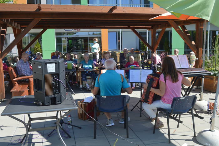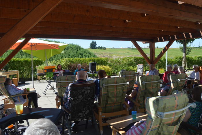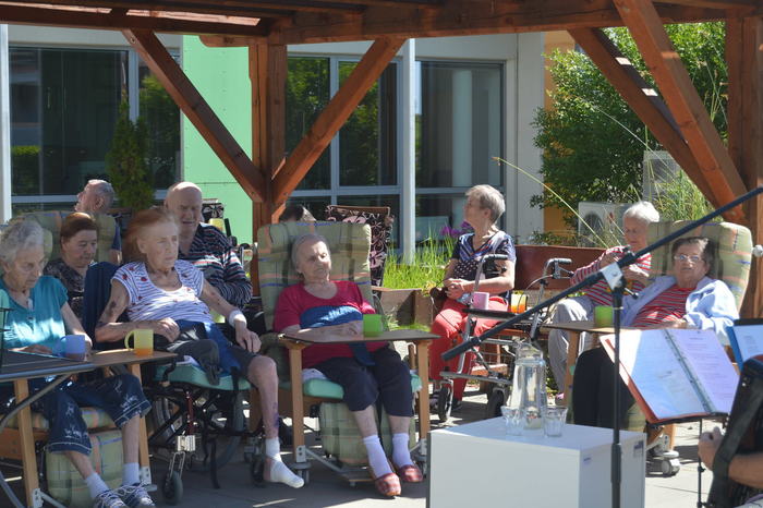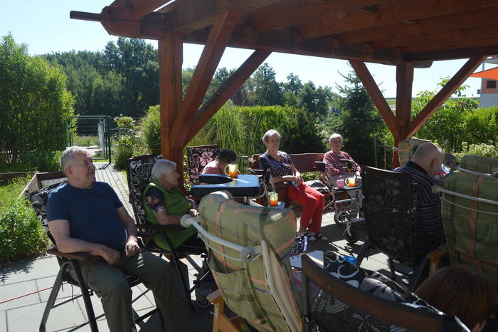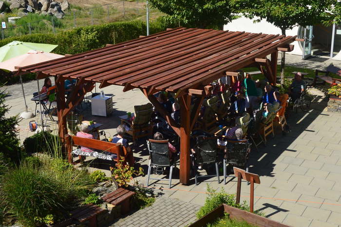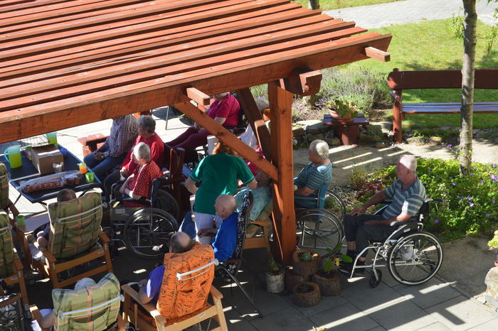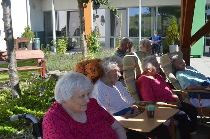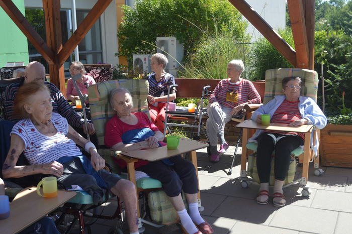 Čtvrteční dopoledne 30. července se konala venkovní oslava narozenin s panem Zdeňkem Rozmarýnem a jeho dcerou. Poslední oslava narozenin se u nás konala v měsíci únoru, tak jsme pokračovali tam, kde jsme i skončili. Společně jsme teda oprášili texty nejznámějších českých lidovek. Ke zpěvu jsme přidali samozřejmě limonádu, nealko šampus, bez kterého by oslava ani přípitek nebyly kompletní, a taky dia zmrzlinu politou vaječným likérem.