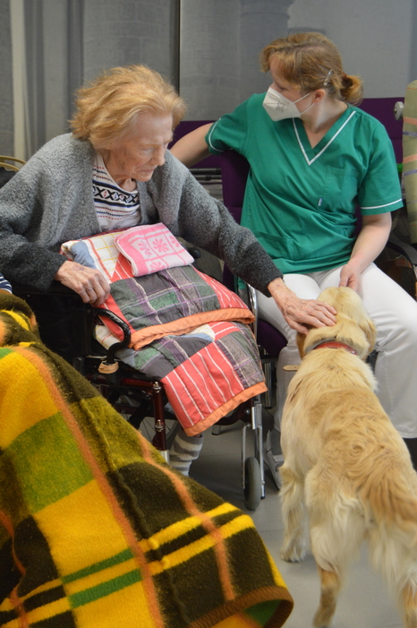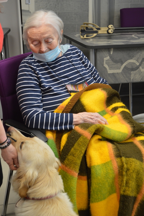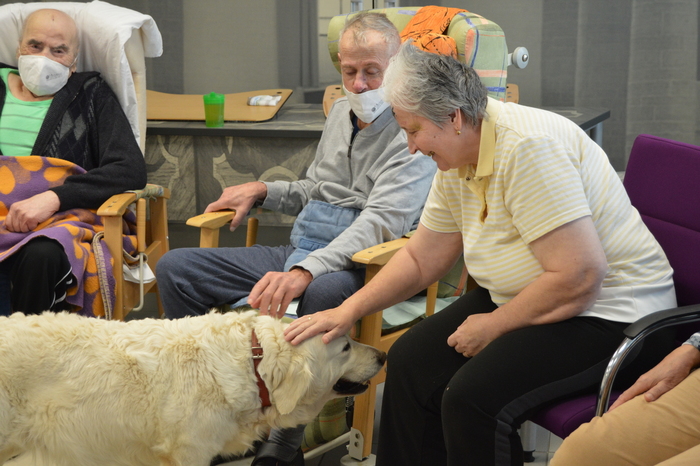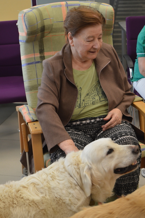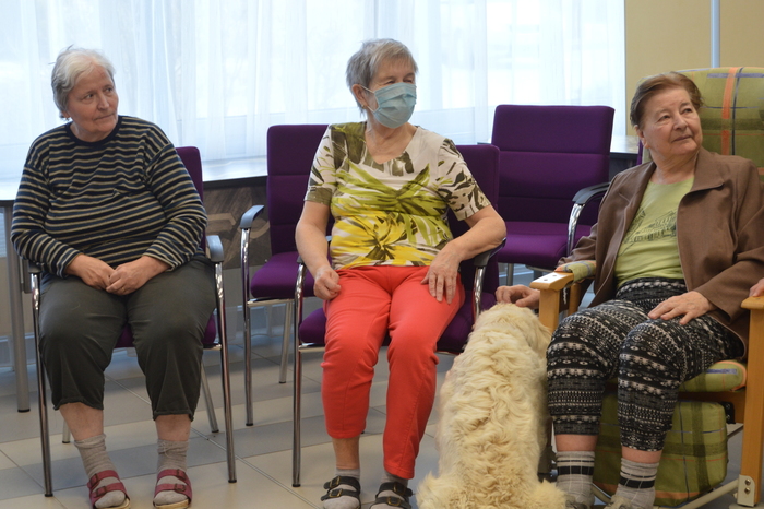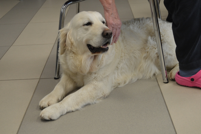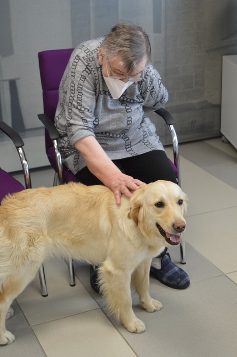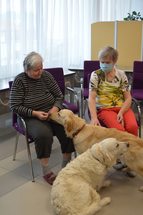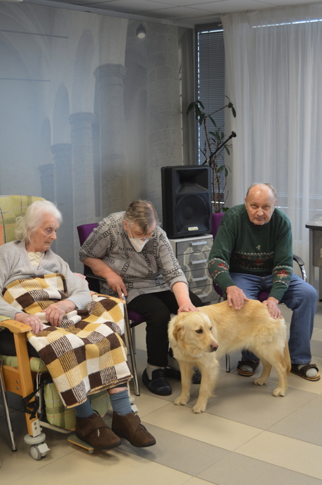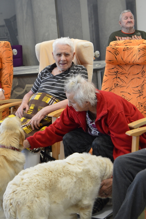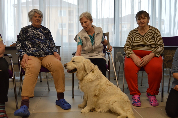Březnová pondělní rána jsme se pravidelně scházeli na U3V, kde probíhala skupinová canisterapie. Přišla za námi naše dobrovolnice a vzala s sebou dvě své mazlivé fenky zlatých retrívrů. Canisterapie je u nás prozatím nejlepším prostředkem, jak rozehnat špatnou náladu a pozapomenout na těžkost dnešní situace. Pejsci nám vždy umožní radovat se z dané chvíle a nemyslet na to, co bude.