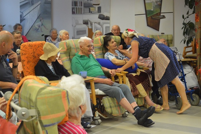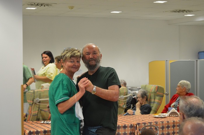 V úterý 24. srpna jsme se přesunuli do jídelny, kde jsme společně oslavili slavnost tradičních dožínek. K tanci a poslechu nám zahrála kapela z Nového Veselí pod taktovkou pana kapelníka Vencelidese. Dobře jsme se bavili, na místě byla příjemná atmosféra, dožínková výzdoba jako je věnec, snop obilí a jeřabiny. Pochutnávali jsme si na koláčích napečených z úrody a místností voněla káva a proslulý rumový čaj.