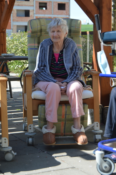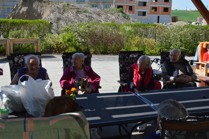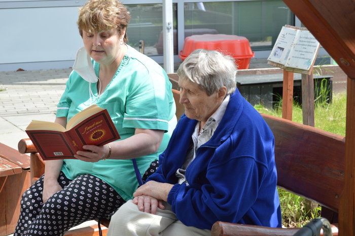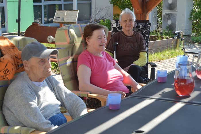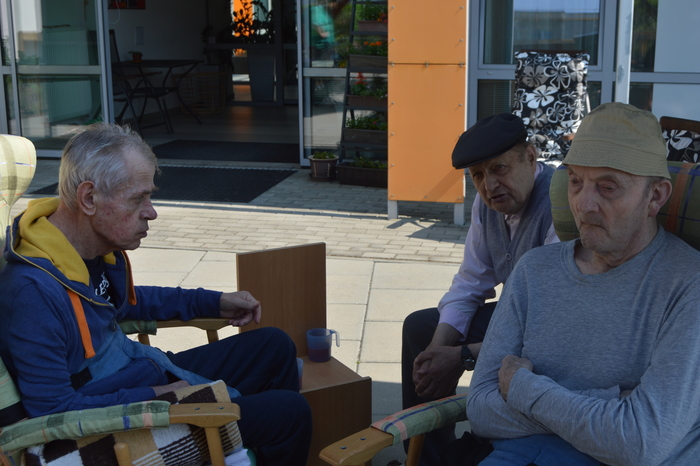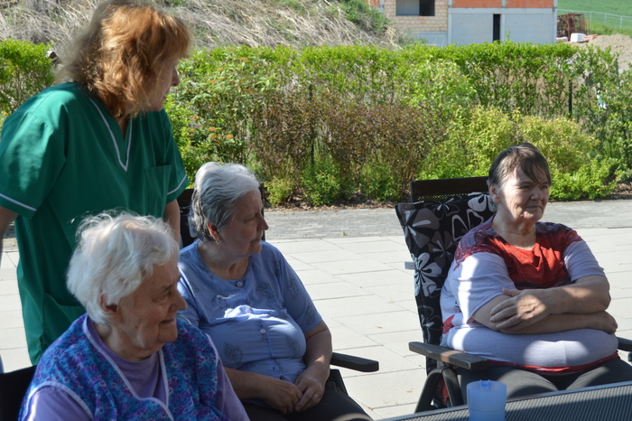Začátkem června nám sluníčko udělalo ohromnou radost. Dovolilo nám pobývat v naší terapeutické zahrádce, kde jsme si četli, povídali a hlavně smáli. A to je pro nás důležité - společně se umět zasmát a pobavit.