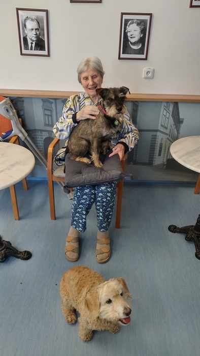 Canisterapie nebo-li terapie psem či fenkou je v našem domově velmi populární. Psi jsou doslova obohaceni darem člověku zlepšit náladu. Zapomeneme na depresivní myšlenky a umožní nám také třeba vyčesáváním chlupů procvičit hmatové smysly. Canisterapie i nadále v domově probíhá jak individuální, tak skupinovou formou. Individuální umožňuje např. polohování psa na lůžku u ležícího klienta, skupinová nás socializuje.