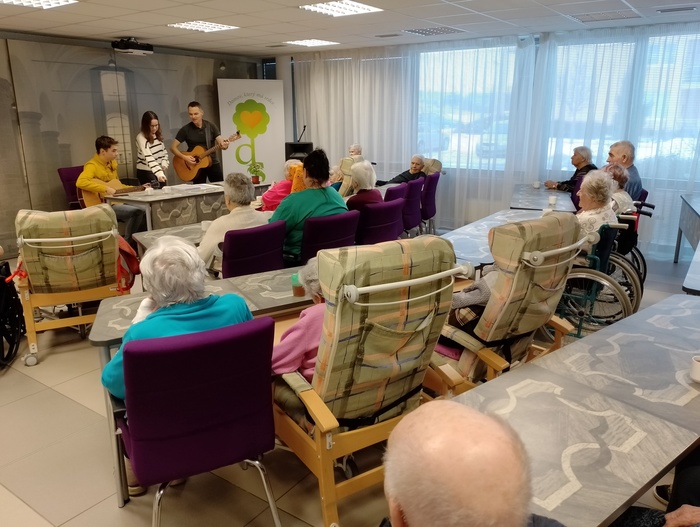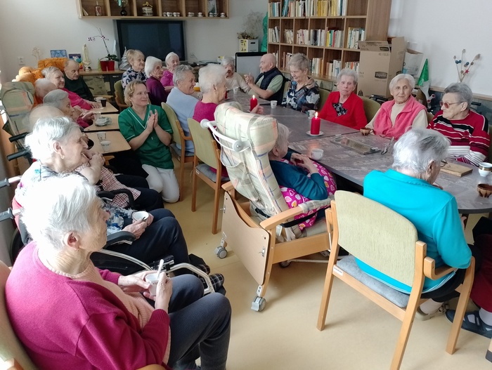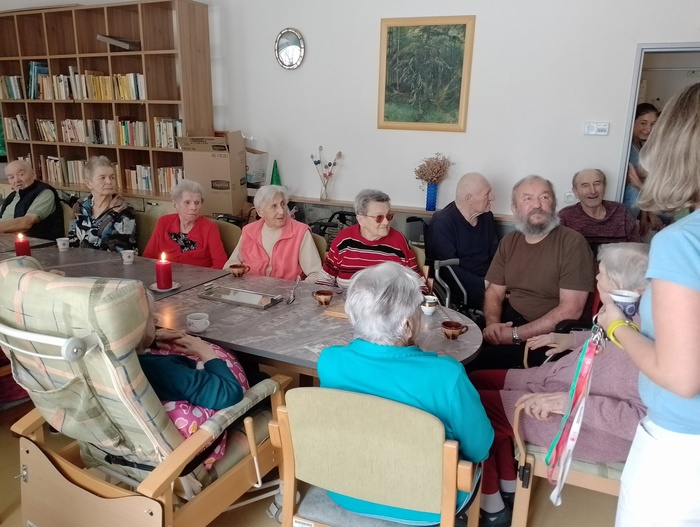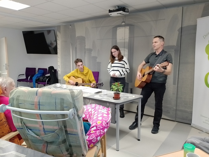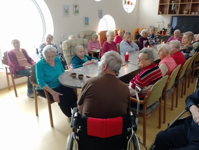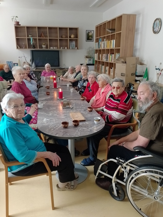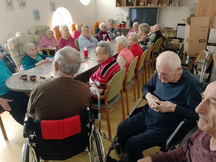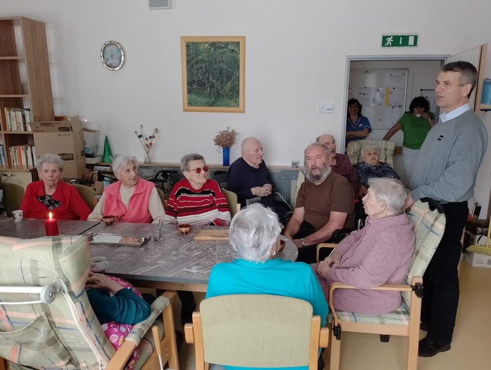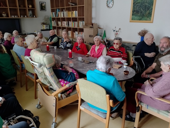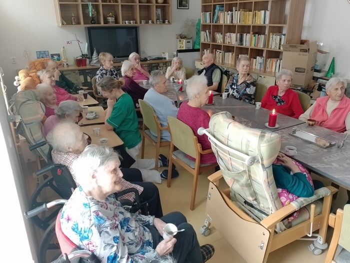 Dopoledne před Štědrým dnem jsme na společenské místnosti 1A punčovali, a dokonce nás navštívil pan děkan Jiří Kaňa a popřál nám požehnané svátky. Odpoledne k nám zavítal pan Petr Zejda s rodinou. Krásně nám zazpívali a zahráli na kytary nejen koledy, ale také zahráli na přání našim obyvatelům.
