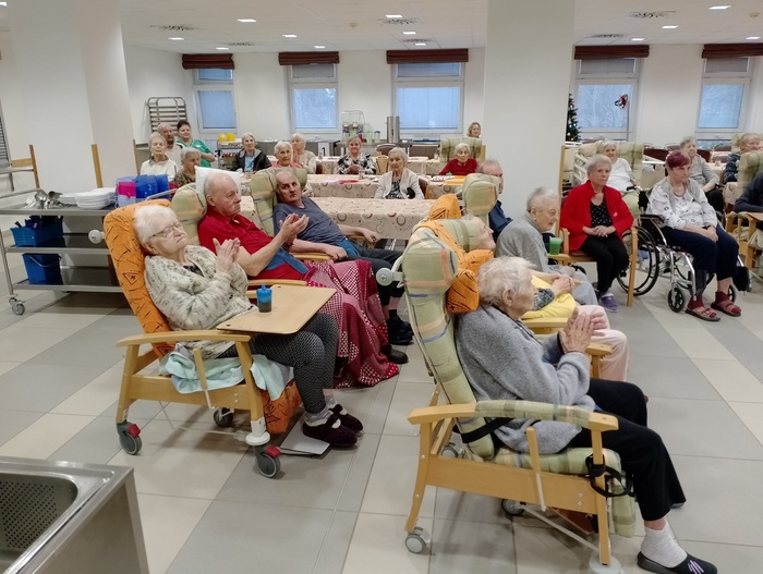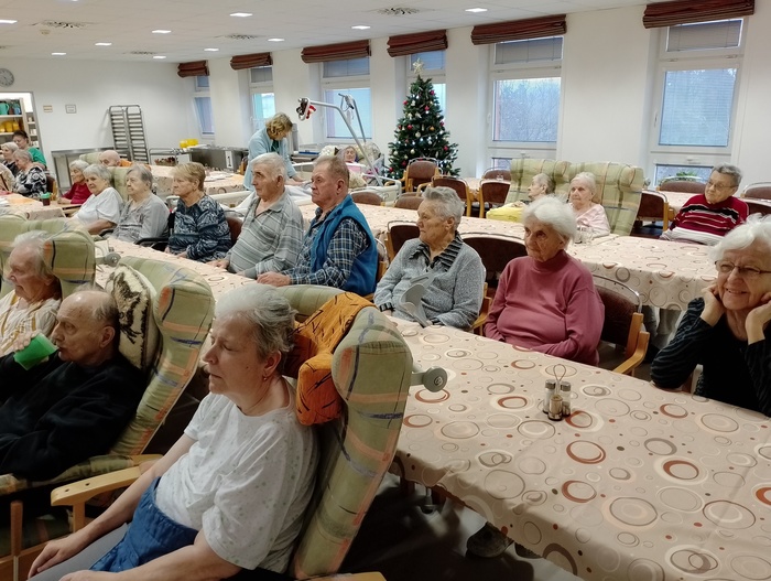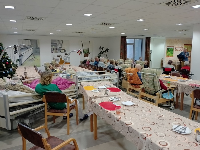 Dopoledne se v prostorách jídelny konal vánoční koncert s kapelou Zahrajem. Odpoledne nám zpříjemnil dobrovolník z Třebíčské organizace Střed pan Vladimír Benda, který za své kytary vykouzlil krásně příjemnou vánoční atmosféru. Celý den se nesl ve znamení koled, zpěvu a krásného pocitu.