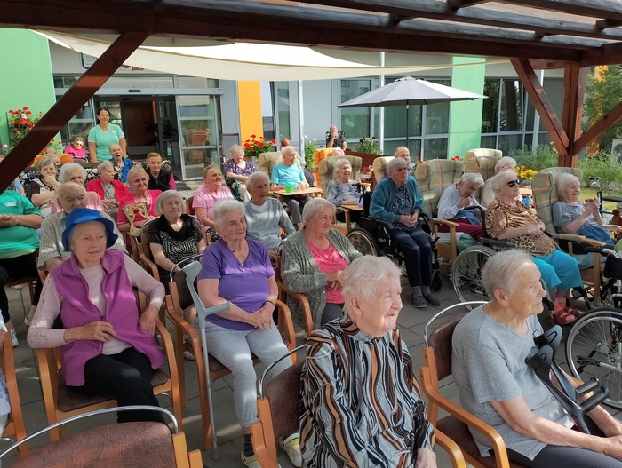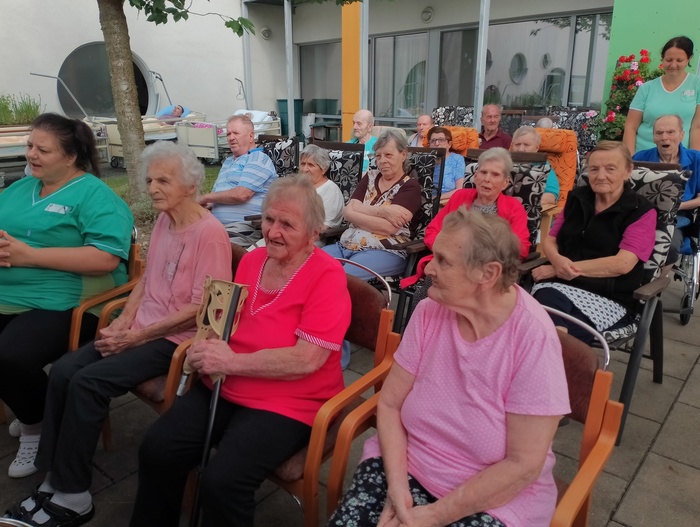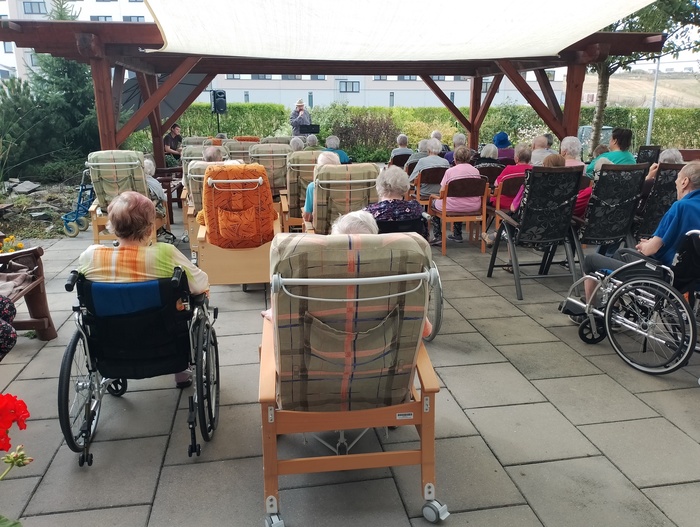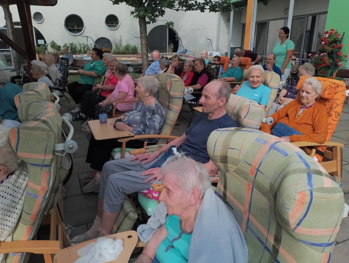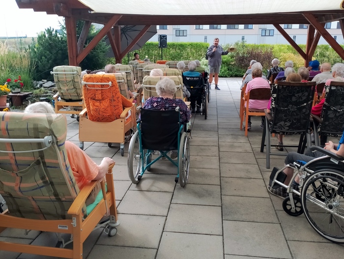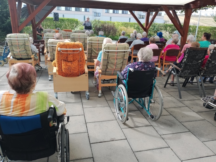 Dnes k nám zavítal starý dobrý známý a námi velmi oblíbený pan Šimon Pečenka. Opět nás naprosto uchvátil svým hlasem a novým programem "Hezky od podlahy". Slyšeli jsme šlágry, které pamatujeme všichni od dětských let. Zazněla např. Šumařinka, Cikánka, Zbraslavská a oprášili jsme texty Břeclavské kasárny a hitovky Kdyby ty muziky nebyly. Nechyběla ani královna české hudby Škoda lásky a nezapomenutelně provedená "hašlerka" Ta naše písnička česká.
