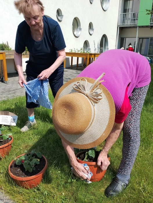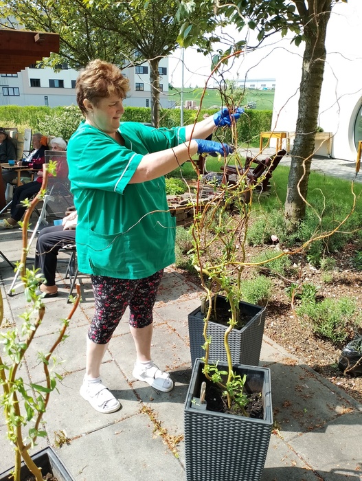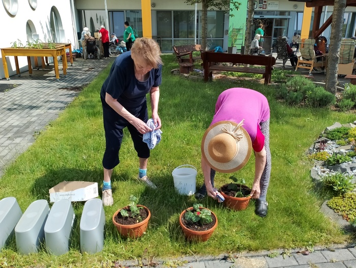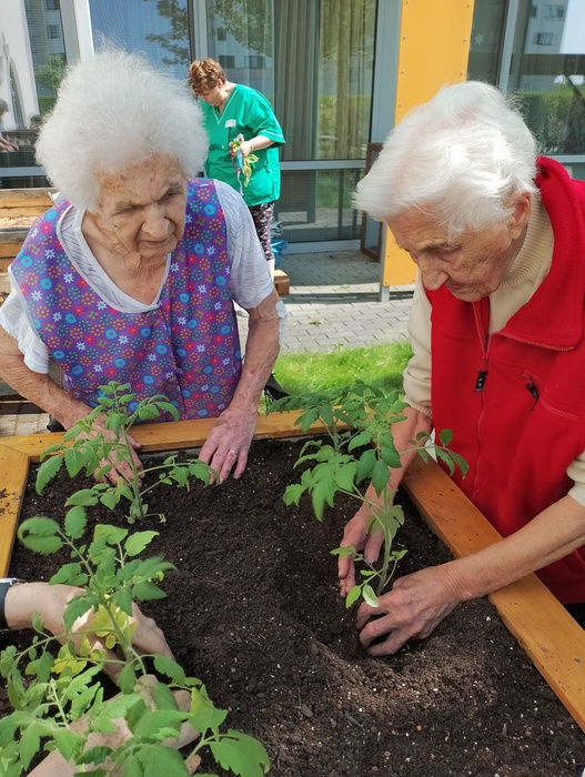 Dnešní krásné slunečné dopoledne jsme věnovali zahrádce. Přesázeli jsme rajčata z kelímků do pojízdných truhlíků a vytáhli jsme na světlo také muškáty, které nyní zdobí vchod domova, atrium a ještě zbylo do truhlíků. Bylo krásné počasí a pobyt venku nám jenom prospěl. Jen se podívejte do galerie, přejeme příjemnou podívanou.