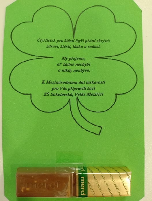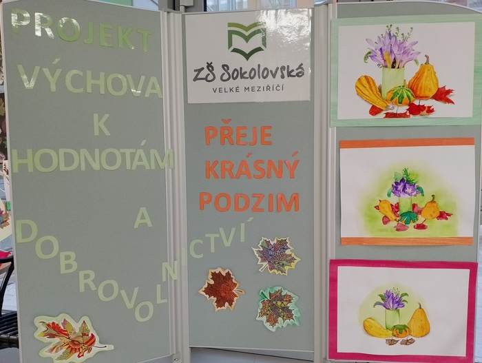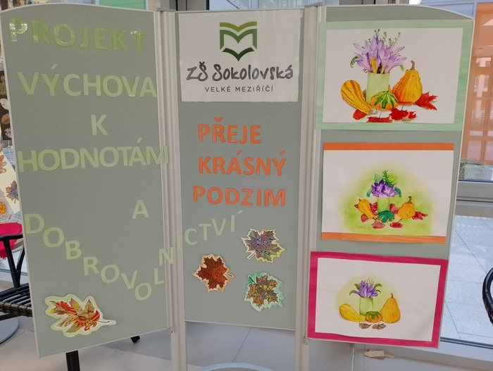 Den laskavosti připadá na 13. listopad. Je ten pravý čas se zastavit a připravit pro děti lekci na téma hodnot, laskavosti a morálky. Alespoň takhle se postupně začala vyvíjet další fáze projektu: Výchova k hodnotám a dobrovolnictví. Výsledkem naší následující spolupráce se ZŠ Sokolovskou je podzimní výstava, kterou máme instalovanou přímo u hlavního vstupu do domova, aby byla všem krásně na očích. Děkujeme žákům ZŠ Sokolovská, kteří se na výtvarných dílech podíleli. Děkujeme také panu řediteli Mgr. Karlu Kaštanovi za osobní předání laskavých přáníček. Za koordinaci, instalaci výstavy a vůbec přípravu celého projektu obrovské DÍKY paní učitelce Mgr. et Mgr. Lence Cendelínové!