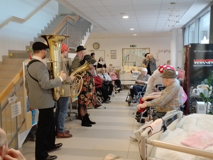 Než přijde postní doba, je tu masopustní veselí a s ním průvod masek doplněný zabijačkou. Zabijačku jsme stihli na konci ledna a Masopust je od pondělí 5. února také za námi. Průvod masek doplnila kapela Líchbend z Kamenice. Podívejte se, jaké kostýmy obyvatelé i zaměstnanci vynesli. V galerii můžete vidět, jak vypadá strašlivý pirát, dítě květin, matka představená, krásná Sněhurka, muchomůrka červená, přísná kantorka se studenty, Karkulka, zdravotní sestřička s pacientem, čertice, kuchařka a spousta dalších originálních převleků.