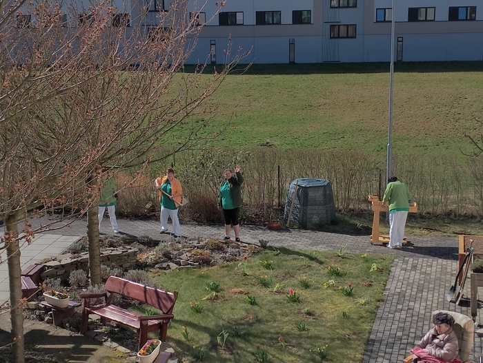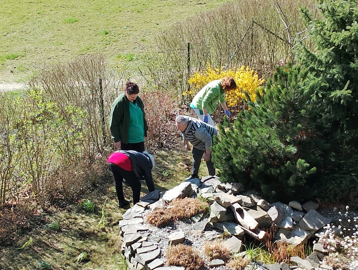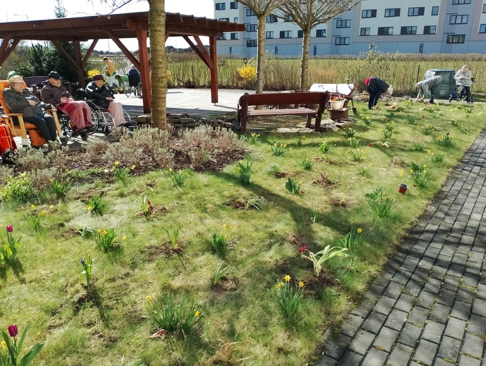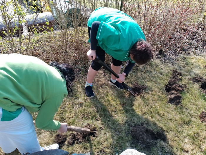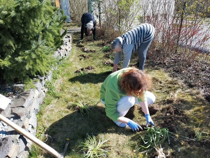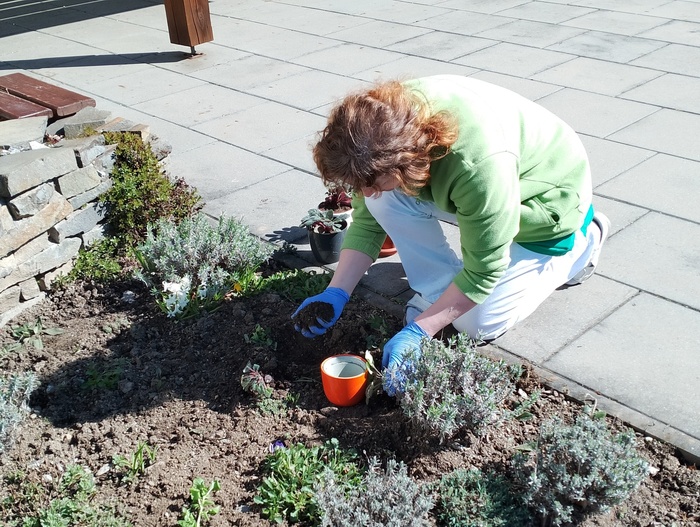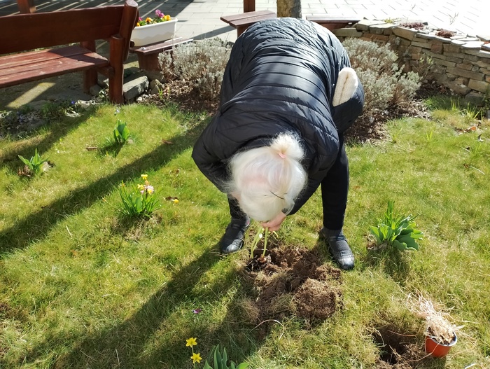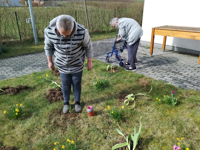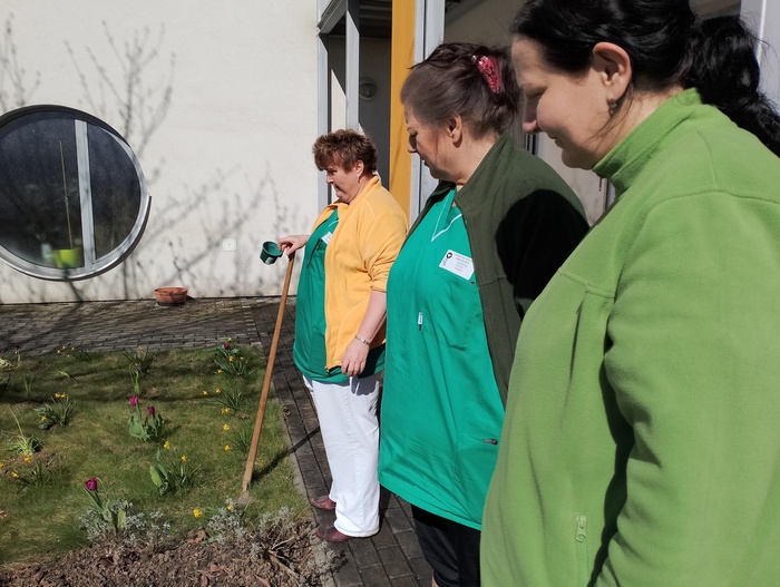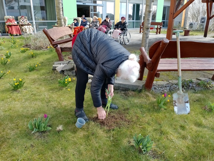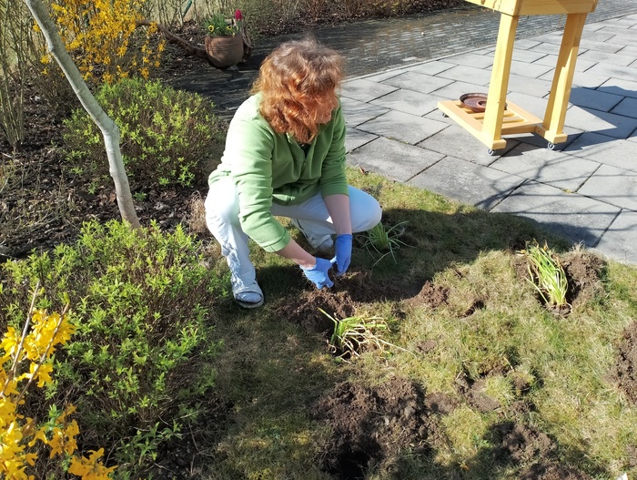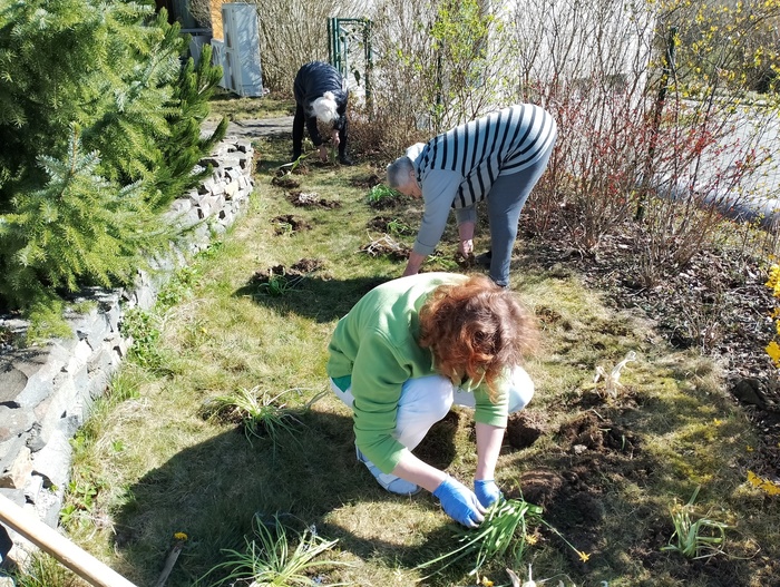 Ještě jednou si vzpomeňte na MDŽ a s ním spojené cibulky květin. Už víte? Tak všechny jsme dnešní dopoledne zasázeli na naší zahrádce. Podívejte, jak nám práce šla od ruky.