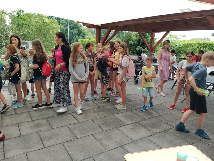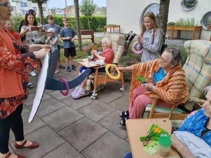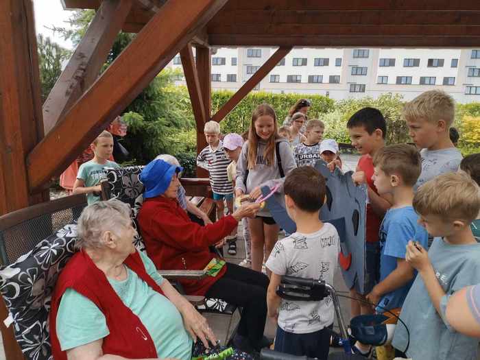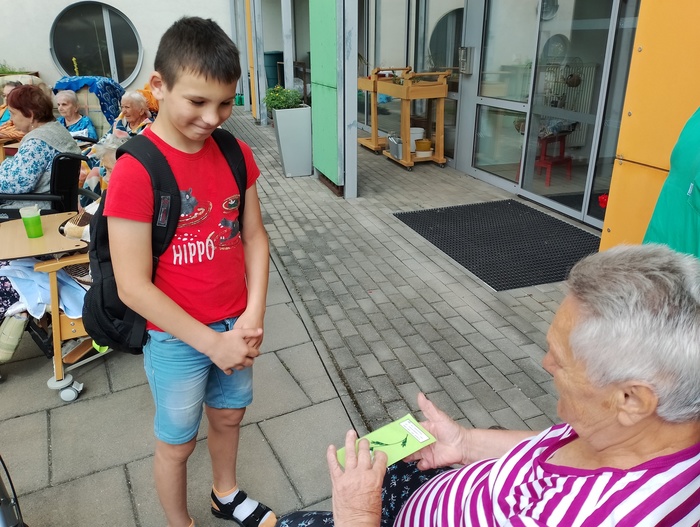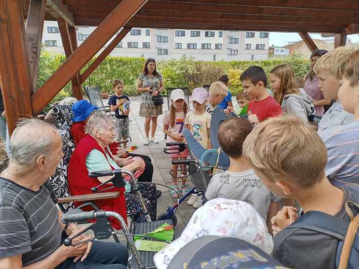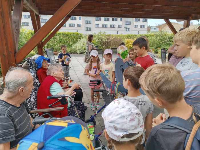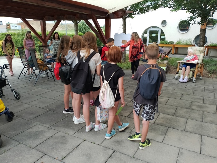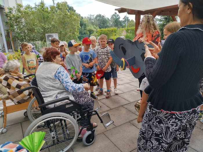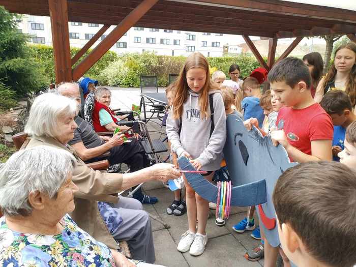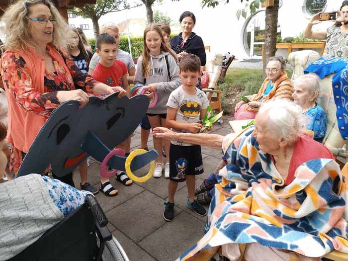 Ještě před koncem školního roku nás navštívily děti tříd 1. A a 5. B ze ZŠ Sokolovská. Darovaly nám přáníčka s poselstvím krásných letních prázdnin a k tomu terapeutického sloníka Dumbíka, na kterém budeme v budoucnu trénovat hod kroužkem do dálky na jeho chobot jako na cíl. Sloník bude umístěn na zeď v dětském koutku, aby mohl plně sloužit návštěvníkům všech věkových kategorií.