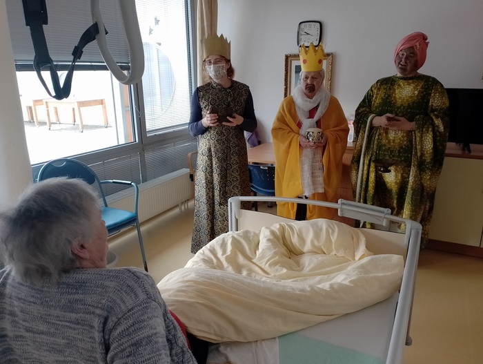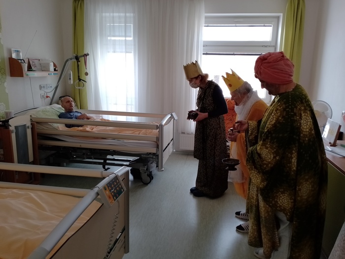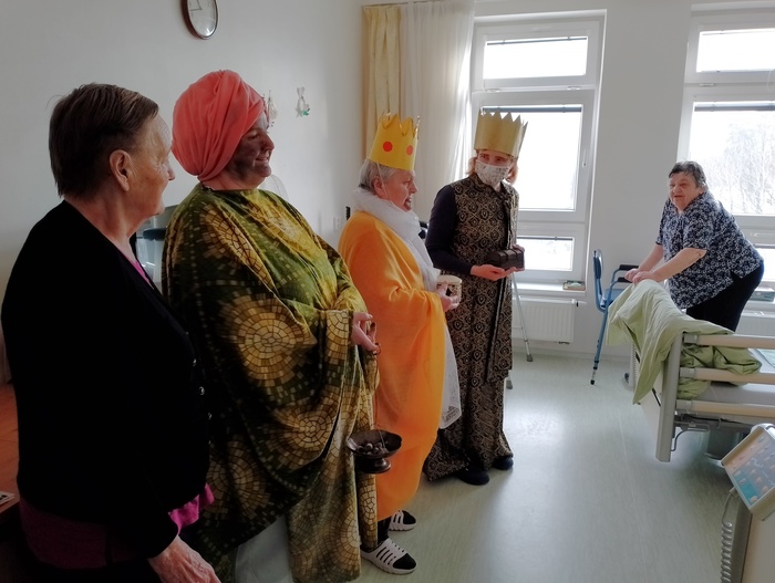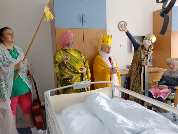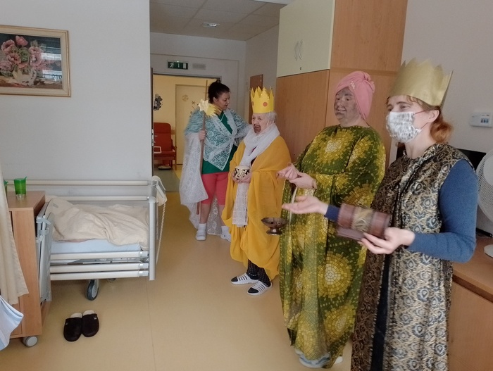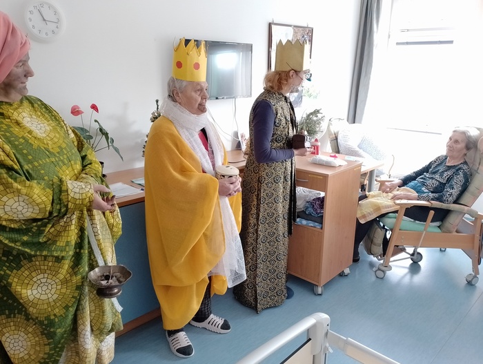 Dnes do našeho domova přišla vzácná návštěva až z dalekého Východu. Zavítali k nám tři mudrci Kašpar, Melichar a Baltazar. Přinesli s sebou zlato, kadidlo a myrhu. Popřáli všem šťastný nový rok a hlavně to zdravíčko, kterého je všude nedostatek.