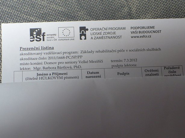 Dne 1. 7. 2011 byla v našem domově zahájena realizace projektu Vzděláváním za kvalitu a profesionalitu, který je spolufinancován z prostředků Operačního programu Lidské zdroje a zaměstnanost z Evropského sociálního fondu a ze státního rozpočtu České republiky.